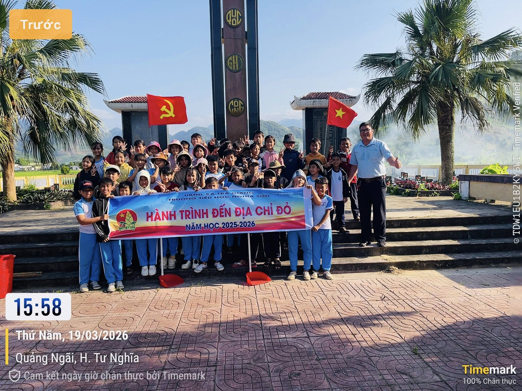 Hưởng ứng Kế hoạch số 10/UBND ngày 15/01/2026 của Ủy ban nhân dân xã Trà Giang về việc chăm sóc các công trình ghi công liệt sĩ và Đài tưởng niệm trên địa bàn, Liên đội Trường Tiểu học Nghĩa Sơn đã tổ chức hoạt động “Hành trình về Địa chỉ đỏ” trong năm học 2025–2026.