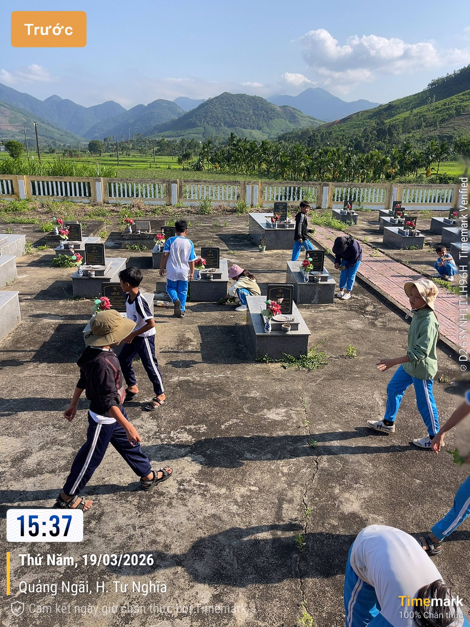 Trong không khí trang nghiêm tại Nghĩa trang Liệt sĩ Nghĩa Sơn, các em học sinh đã thành kính dâng hương, dành phút mặc niệm tưởng nhớ công lao to lớn của các anh hùng liệt sĩ. Bên cạnh đó, các em còn tích cực dọn vệ sinh, nhổ cỏ, lau chùi bia mộ, góp phần giữ gìn cảnh quan xanh – sạch – đẹp.