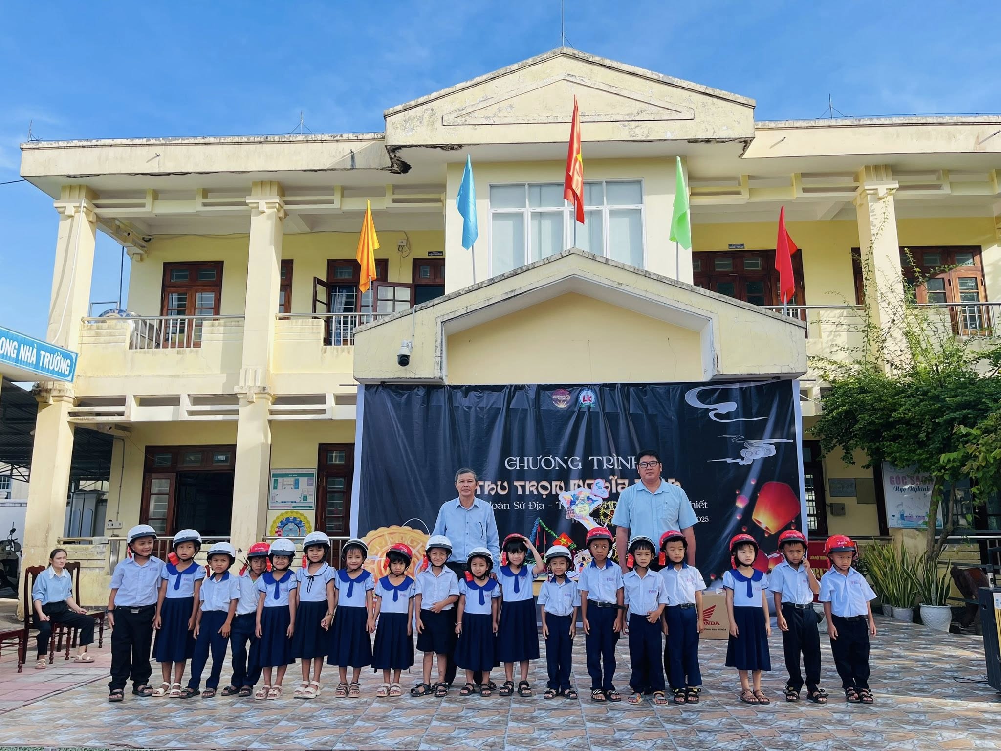 Tại buổi sinh hoạt, thầy Võ Duy – Hiệu trưởng nhà trường đã trang trọng đọc Thư chúc Tết Trung thu của Chủ tịch nước Cộng hòa Xã hội Chủ nghĩa Việt Nam gửi đến thiếu nhi cả nước. Tiếp đó, thầy Trương Văn Thu – Tổng phụ trách Đội đã trao tặng 20 mũ bảo hiểm cho các em học sinh lớp 1, đồng thời căn dặn toàn thể học sinh nghiêm túc chấp hành luật An toàn giao thông khi đến trường và về nhà.