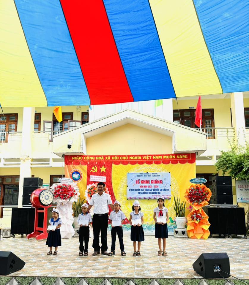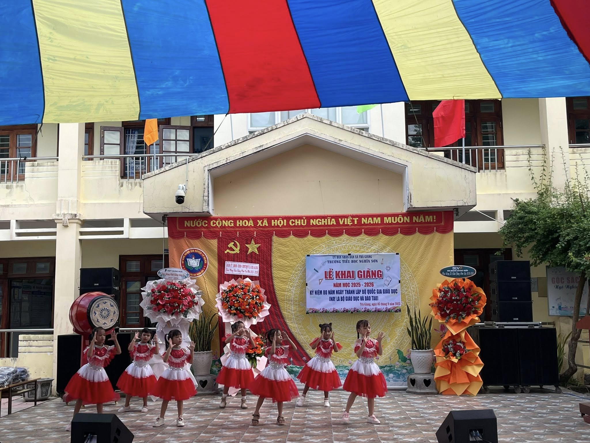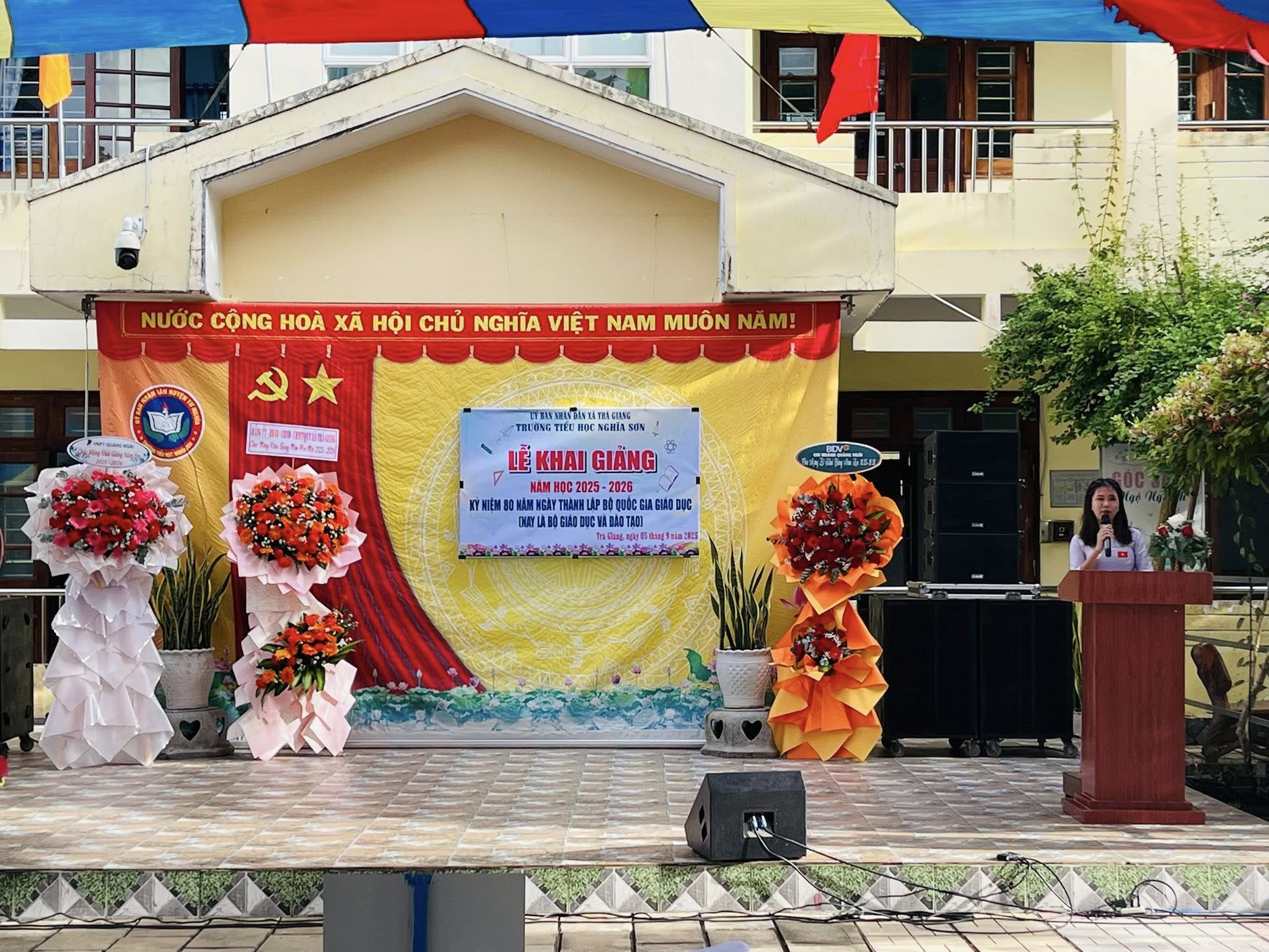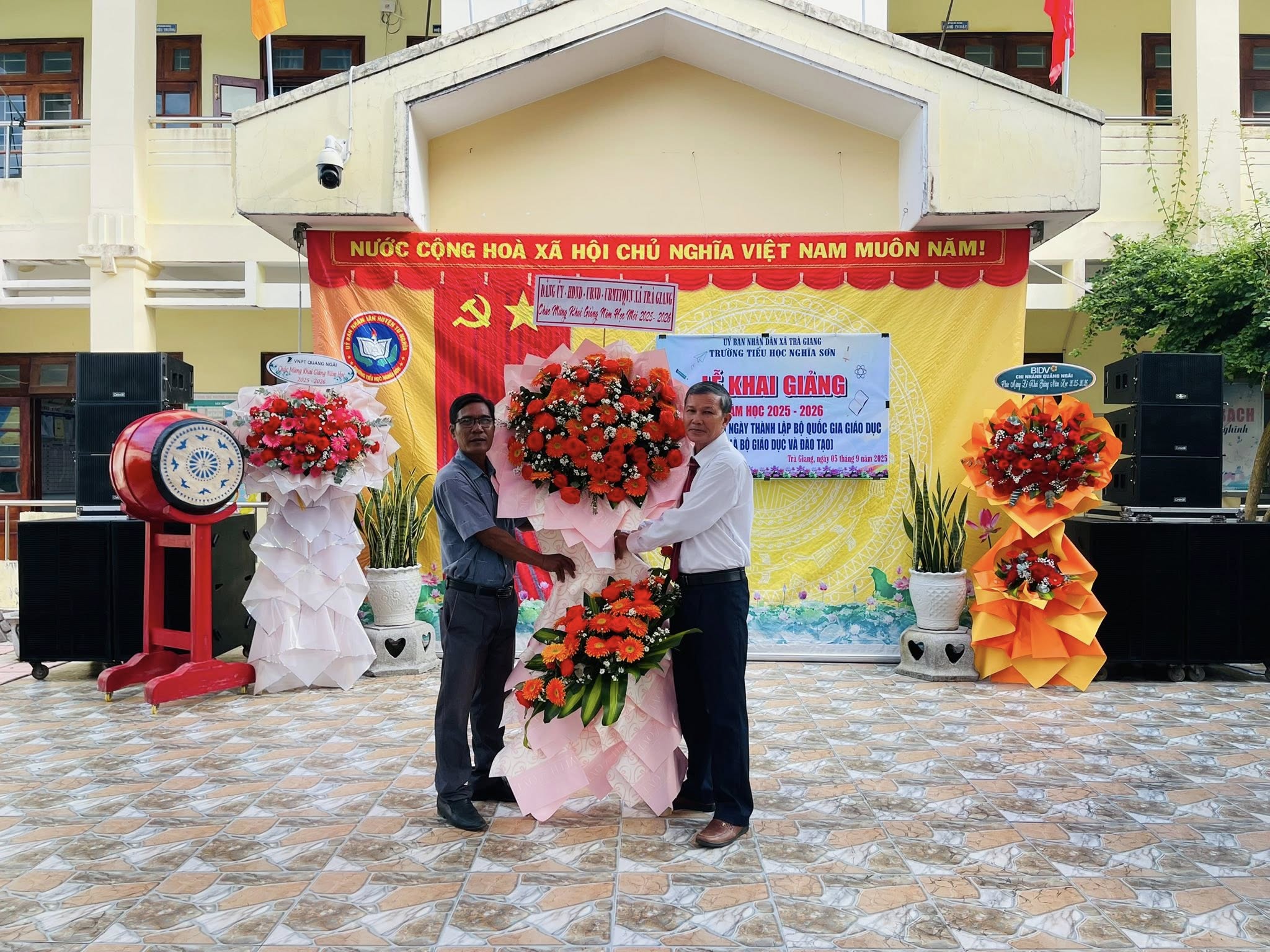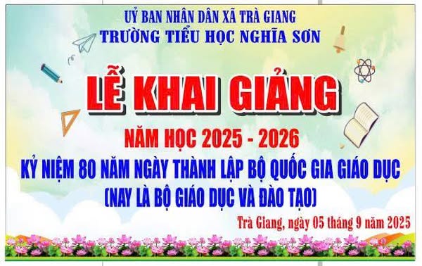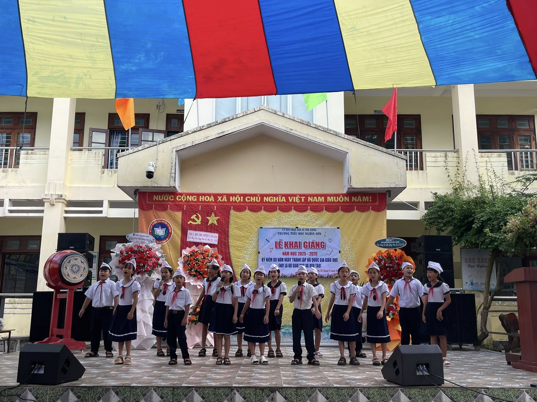 Sáng ngày 5/9/2025 Trường Tiểu học Nghĩa Sơn long trọng tổ chức Lễ Khai giảng năm học mới 2025-2026 và Dự cầu truyền hình Trực tiếp Kỷ niêm 80 năm ngày thành lập Bộ Quốc gia Giáo Dục (nay là Bộ Giáo Dục và Đào tạo). Nhà trường vinh dự được đón quý lãnh đạo đại diện Đảng uỷ, HĐND, UBND và UBMTTQVN xã Trà Giang. Được tặng lẵng hoa, 13 suất quà của UBND xã Trà Giang, Công ty TNHH Mai Phú Quý và các nhà Hảo Tâm.